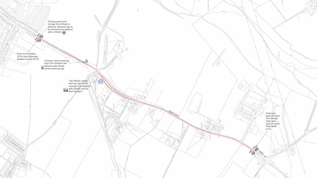 Reason for proposal: The proposed Order is considered necessary for avoiding danger to persons or other traffic using the road and for preventing the likelihood of any such danger arising. The proposed 50mph speed limit is intended to cover that length of the B489 Tring Road and Icknield Way that is partially built-up and where there are local concerns about excessive vehicle speeds.