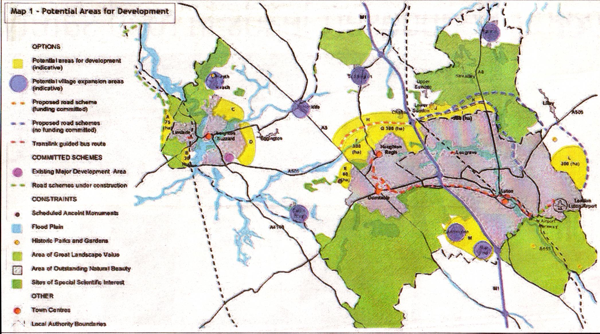 Initially the Luton/Dunstable/ Houghton Regis and Leighton-Linslade growth area joint planning and transportation committee asked landowners simply to identify any areas capable of sustaining housing.